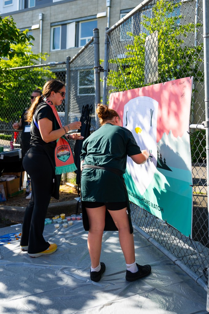 What began as a simple outline quickly became something more meaningful. Each brushstroke reflected a different story, a different reason for showing up. It was a chance for fans to physically leave a mark on the club’s history. In a season defined by firsts, this became another tangible reminder that Salmon Bay FC was always meant to belong to the community.