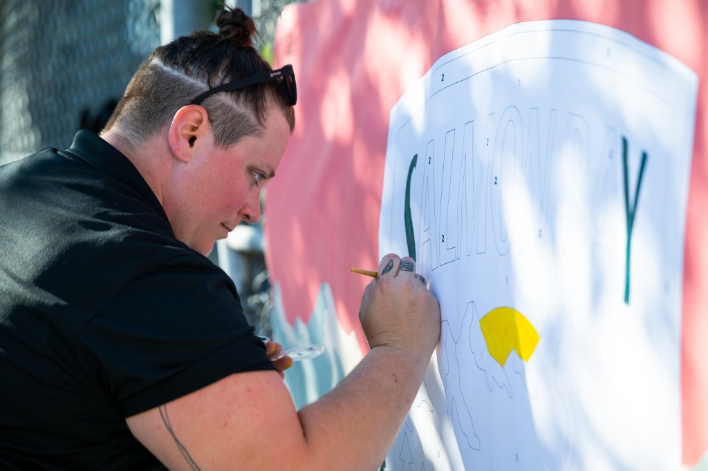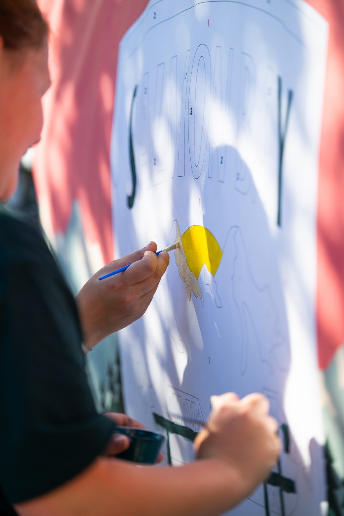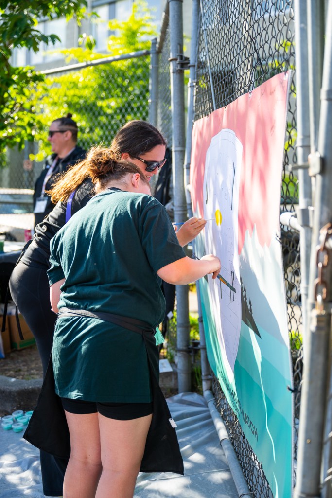 The blank outline was created by Salmon Bay Vice President Tiffany Mallick in partnership with Seattle Printworks, with everything else left to be filled in by using leftover paint from the mural at Rough and Tumble. Of the nearly 1,500 fans who piled into Interbay Stadium for the home opener, dozens of artistically inclined supporters of all ages, races, and genders came together to paint — a feat the late Bob Ross would have been proud of.